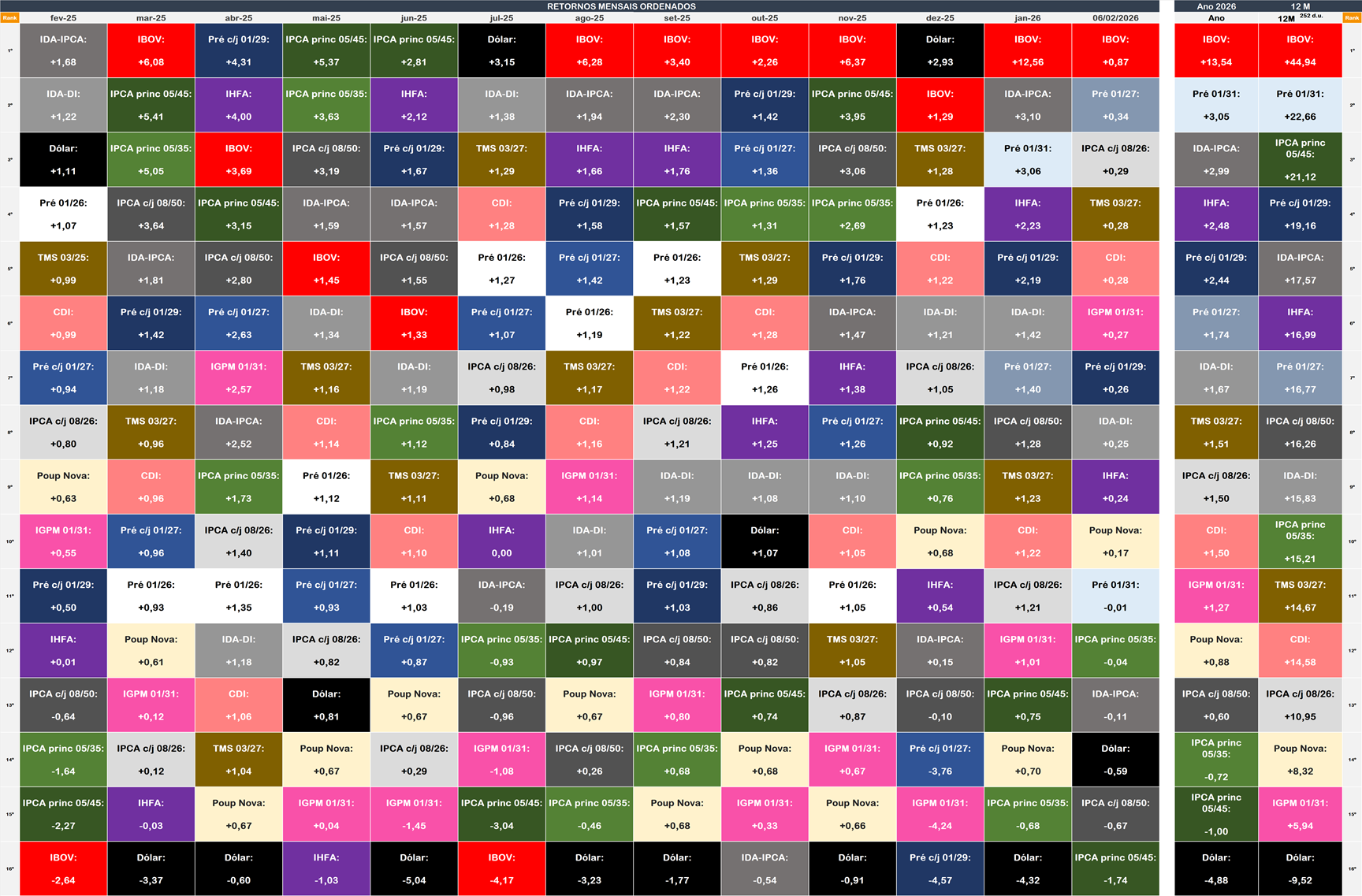 A ata do Copom confirmou a intenção de iniciar o ciclo de cortes da Selic em março e reforçou a percepção de que o primeiro movimento poderá ser de 50 pontos-base, contribuindo para o fechamento da curva na segunda etapa do pregão, especialmente após a forte queda da produção industrial em dezembro, que evidenciou perda de ritmo da atividade econômica. O ambiente externo favorável, com dólar enfraquecido e fluxo positivo para emergentes, ajudou a sustentar o movimento, enquanto instituições como Santander e Itaú revisaram suas projeções para um corte inicial mais robusto. A precificação implícita da curva chegou a indicar cerca de 92% de probabilidade de um corte de 0,50 ponto em março, reforçada por dados industriais fracos e percepção de melhora no cenário inflacionário. As indicações de Guilherme Mello e Tiago Cavalcanti para o BC tiveram impacto limitado no pregão, já que os dados econômicos e o tom da ata dominaram o comportamento dos juros.