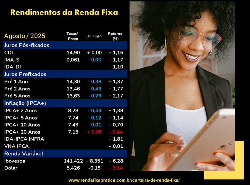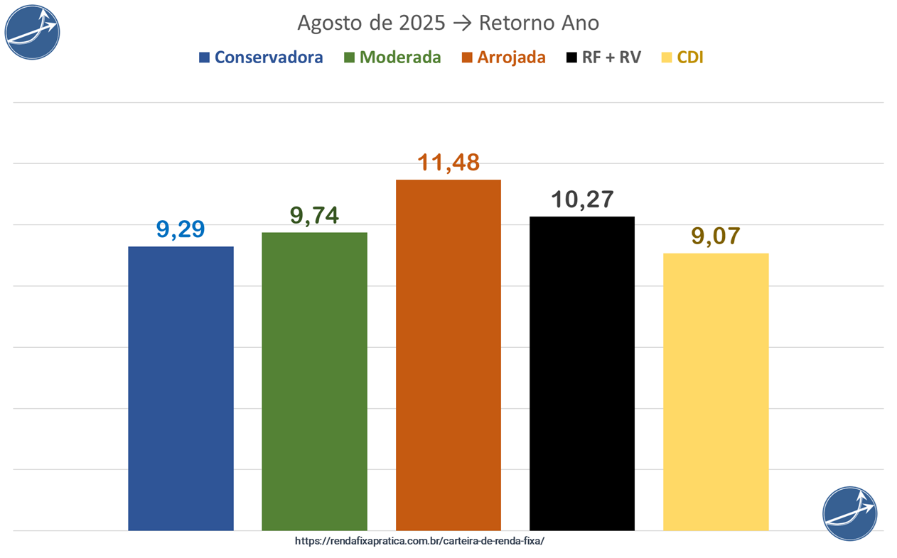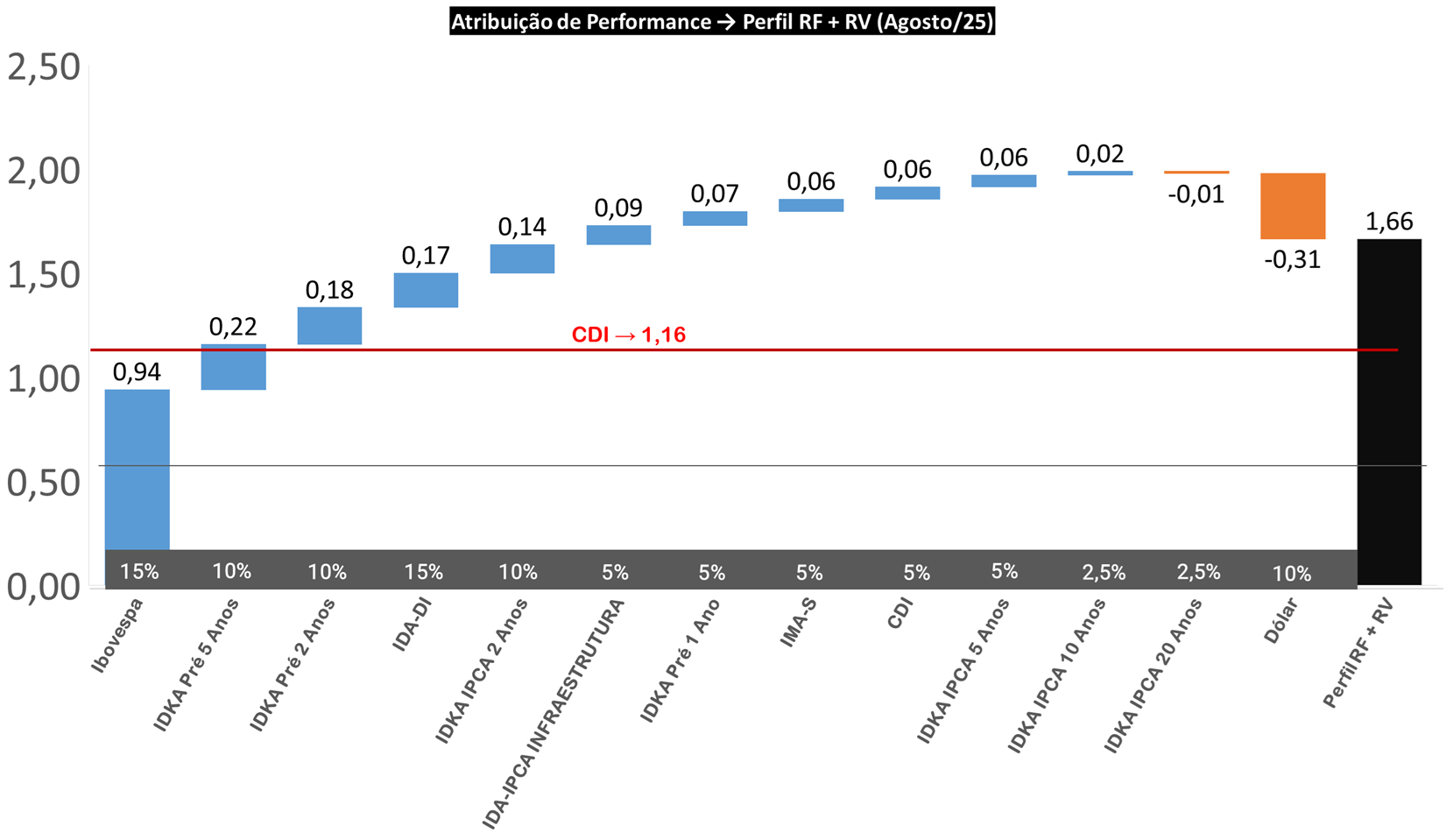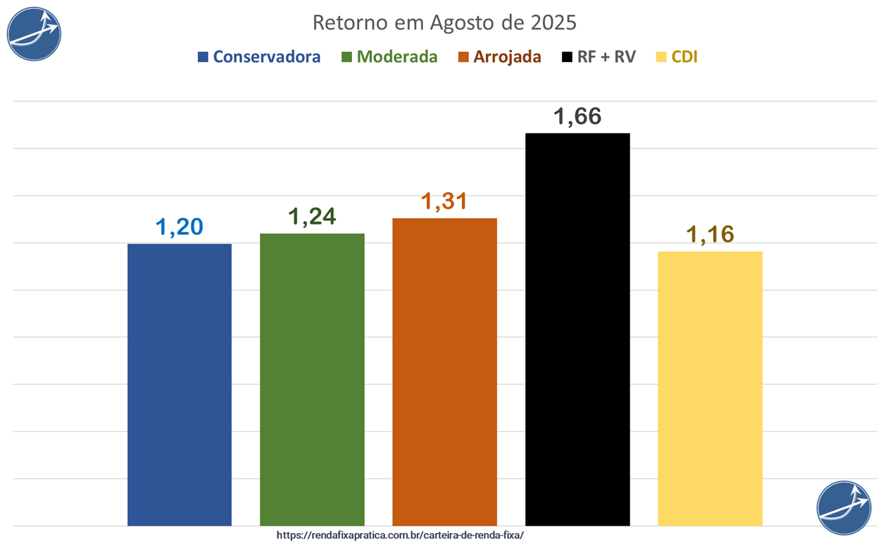 A Carteira RF e RV foi o destaque da renda fixa no mês de agosto, com retorno de 1,66% no mês.