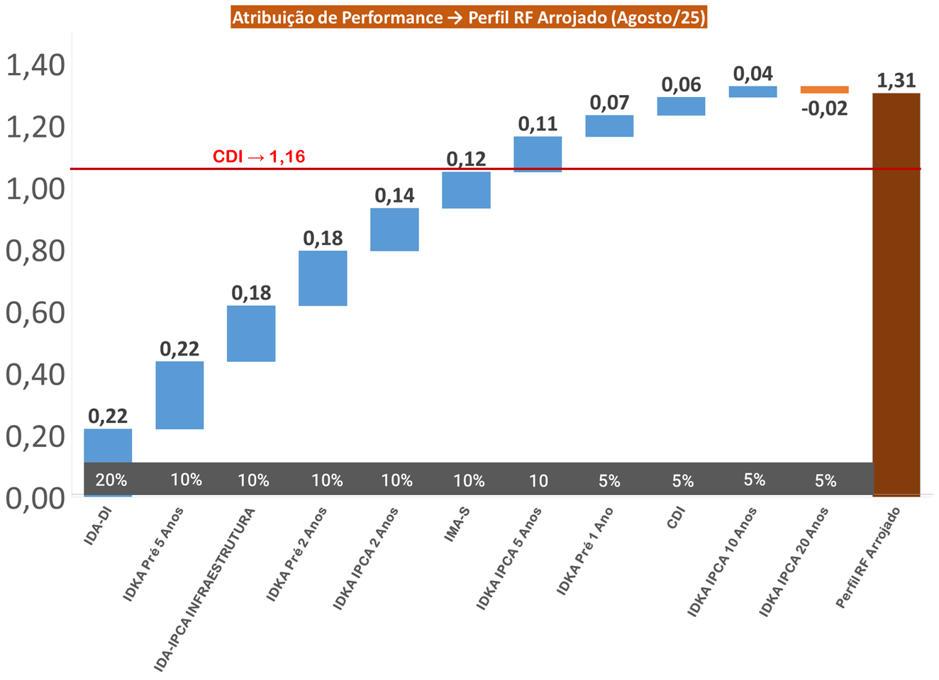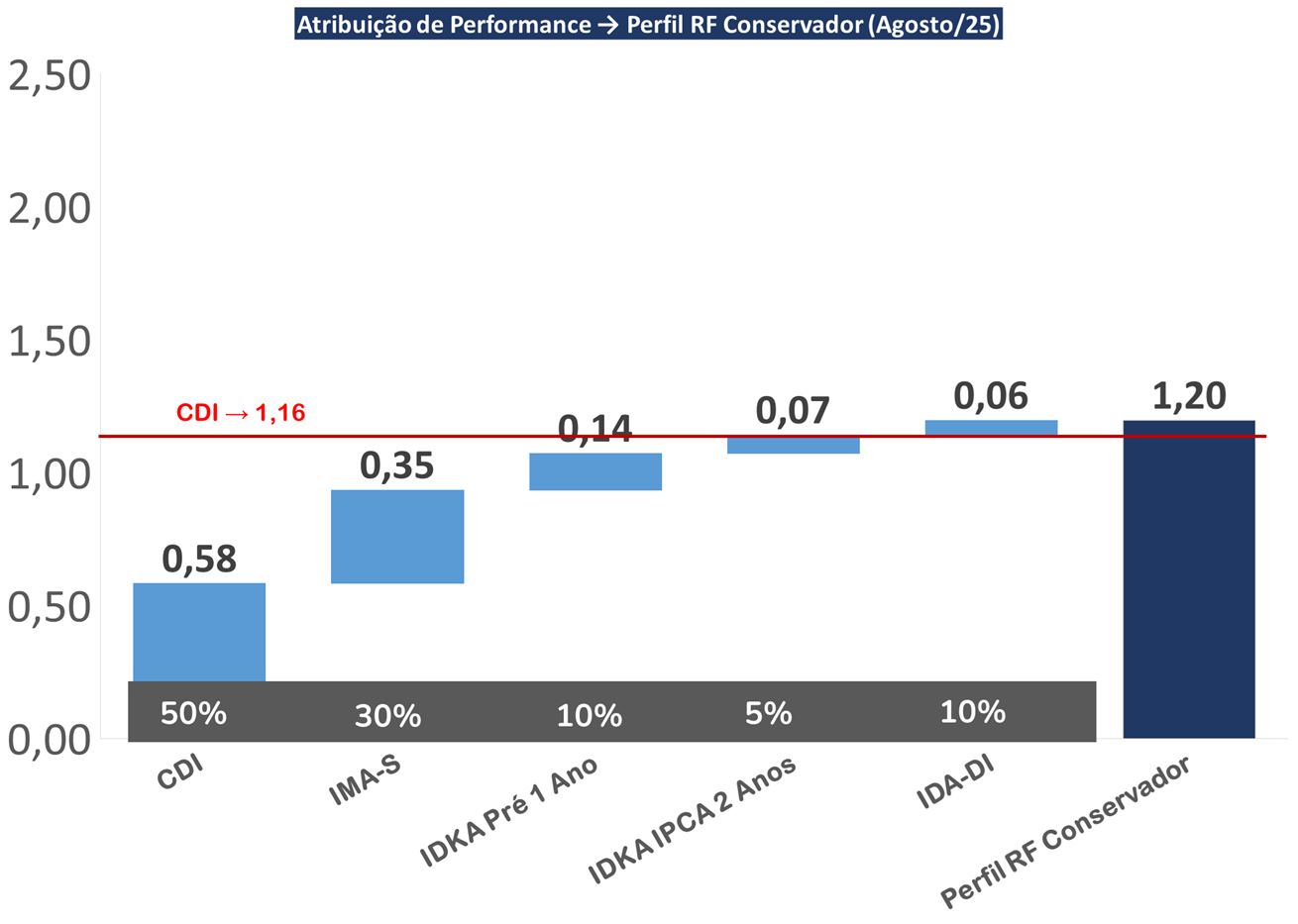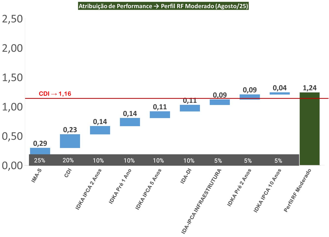 A Carteira RF e RV foi o destaque da renda fixa no mês de agosto, com retorno de 1,66% no mês.
